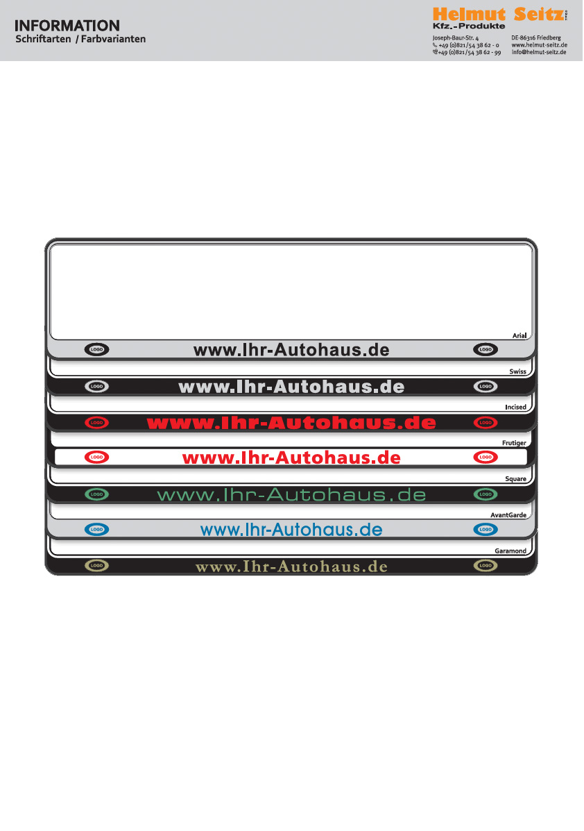 Informationsblatt über Schrift- und Farbvariationen