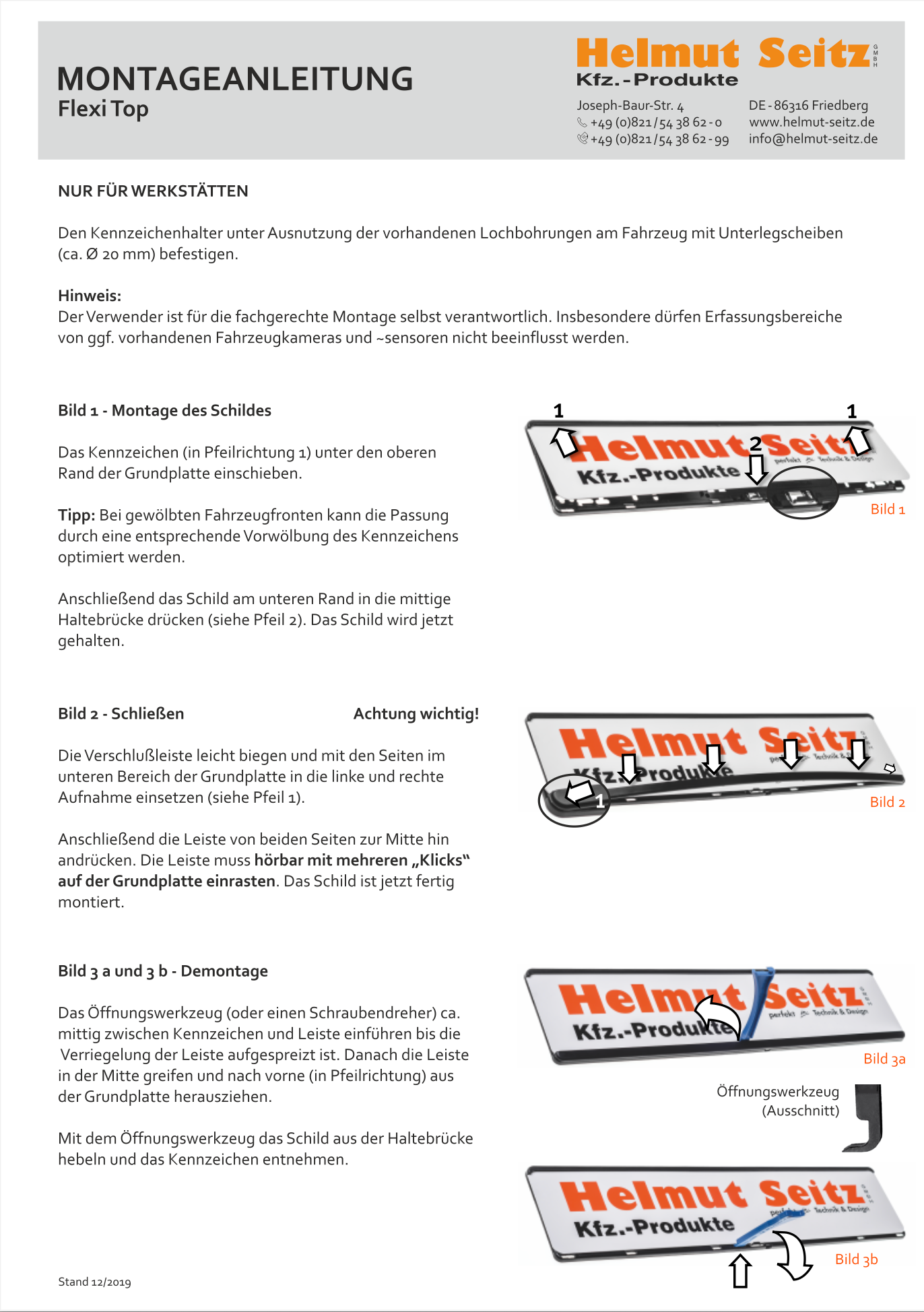 Montageanleitung für unsere Kennzeichenhalter Flexi Top