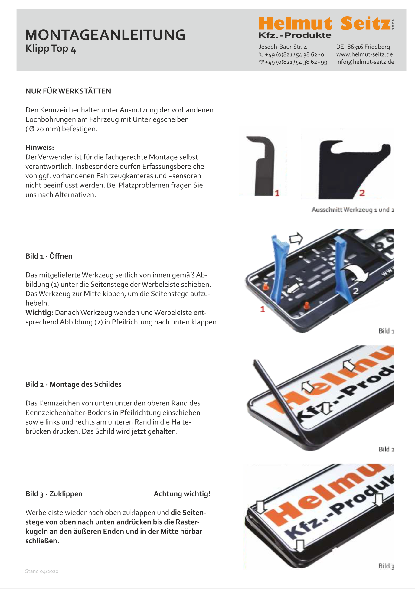 Montageanleitung für unseren Kennzeichenhalter Klipp Top 4