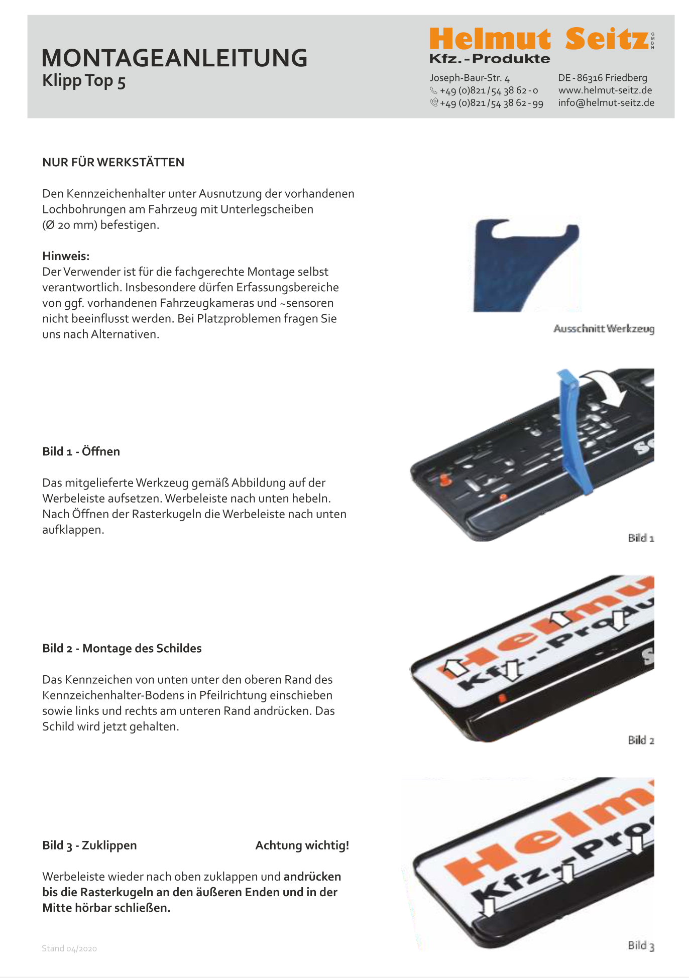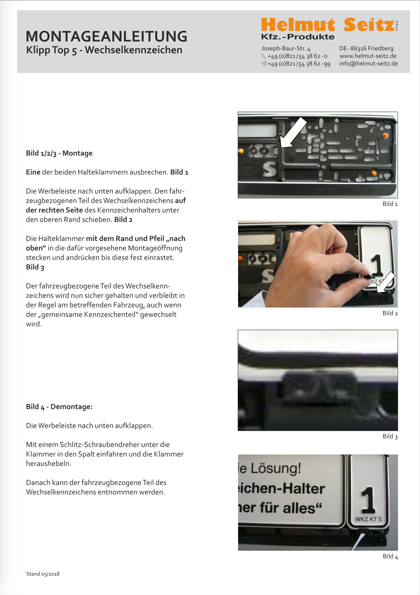 Montageanleitung für für unseren Kennzeichenhalter Klipp Top 5 für Wechselkennzeichen