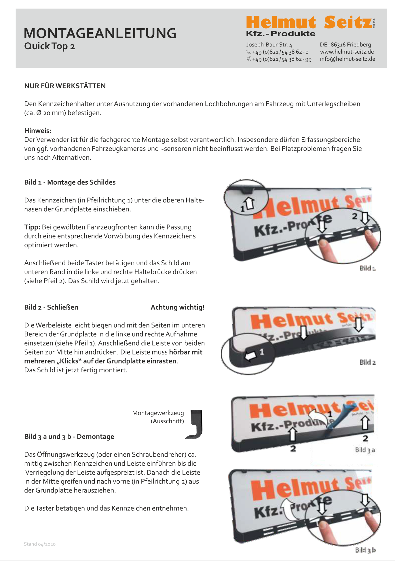 Montageanleitung für für unseren Kennzeichenhalter Quick Top 2