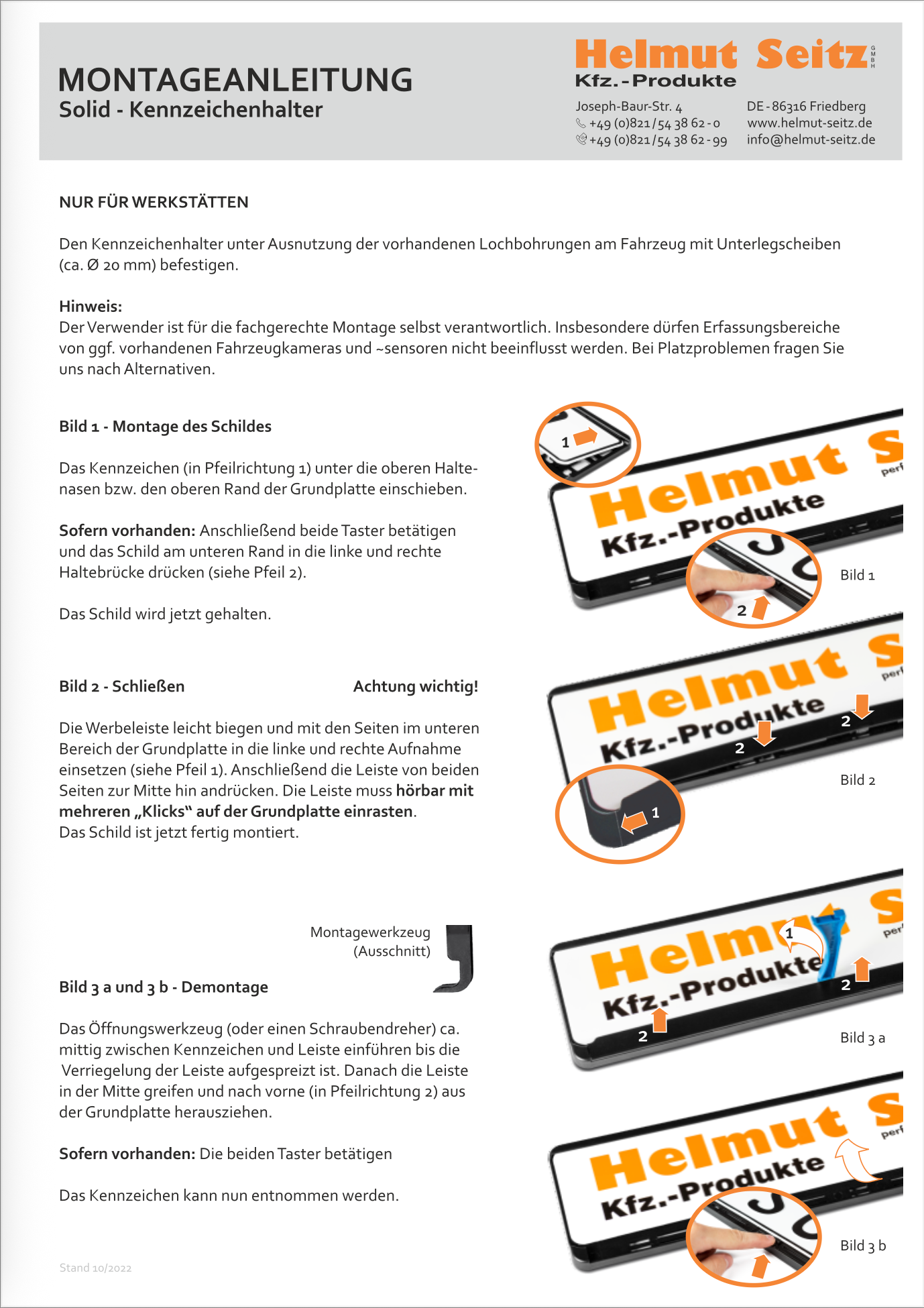 Montageanleitung für für alle Kennzeichenhalter Solid