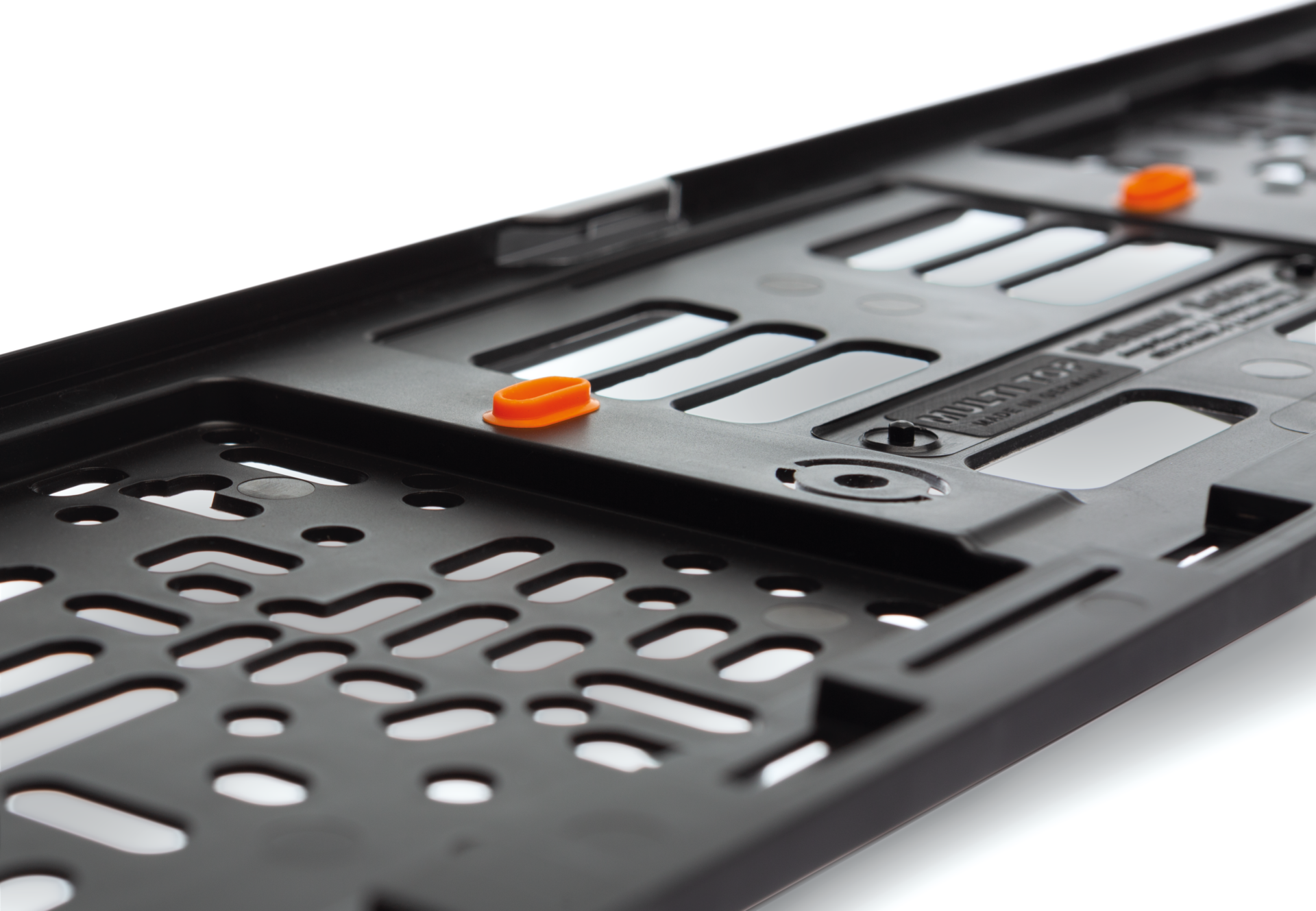 - Einfaches Einlegen des Kennzeichens mit innovativer Vorhalterung mit Taster.